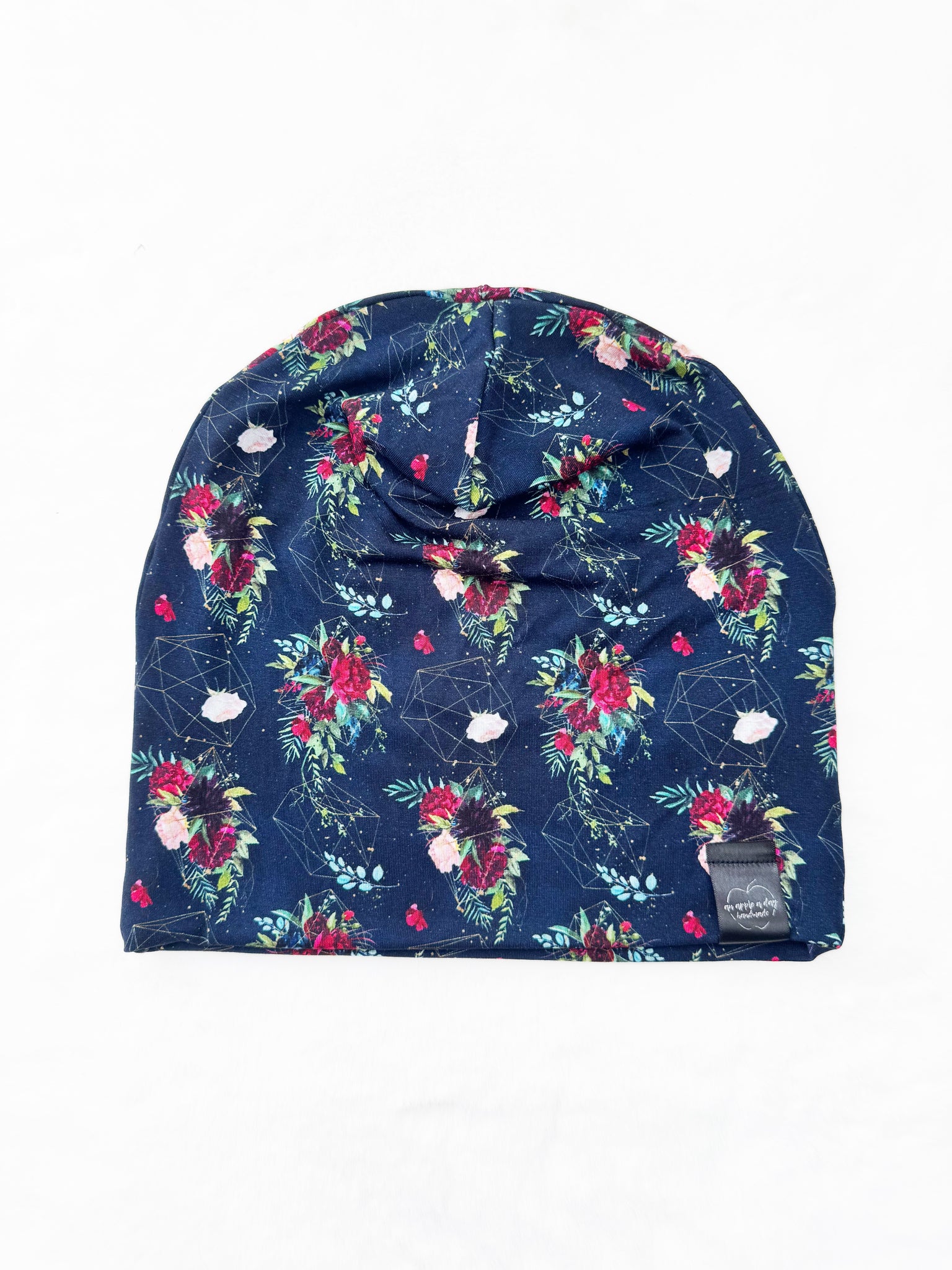 Material: 95% bamboo 5% spandex Once on, gently tug crown of hat downward to create slouch look.